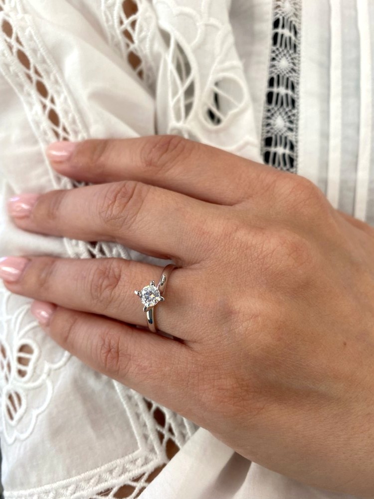 Δαχτυλίδι μονόπετρο σε λευκό χρυσό 14 καρατίων με πέτρα ζιργκόν.