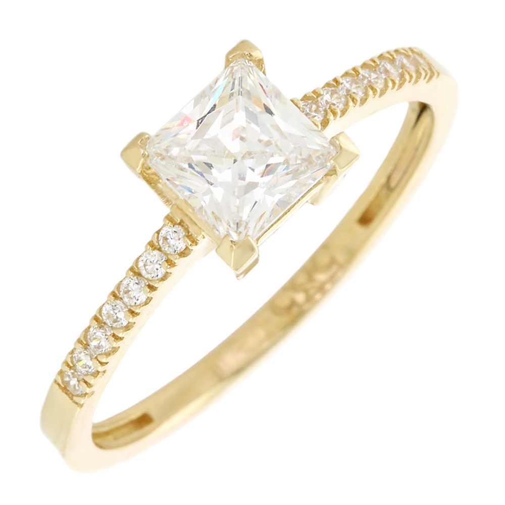 Δαχτυλίδι μονόπετρο σε κίτρινο χρυσό 14 καρατίων με πέτρες ζιργκόν.