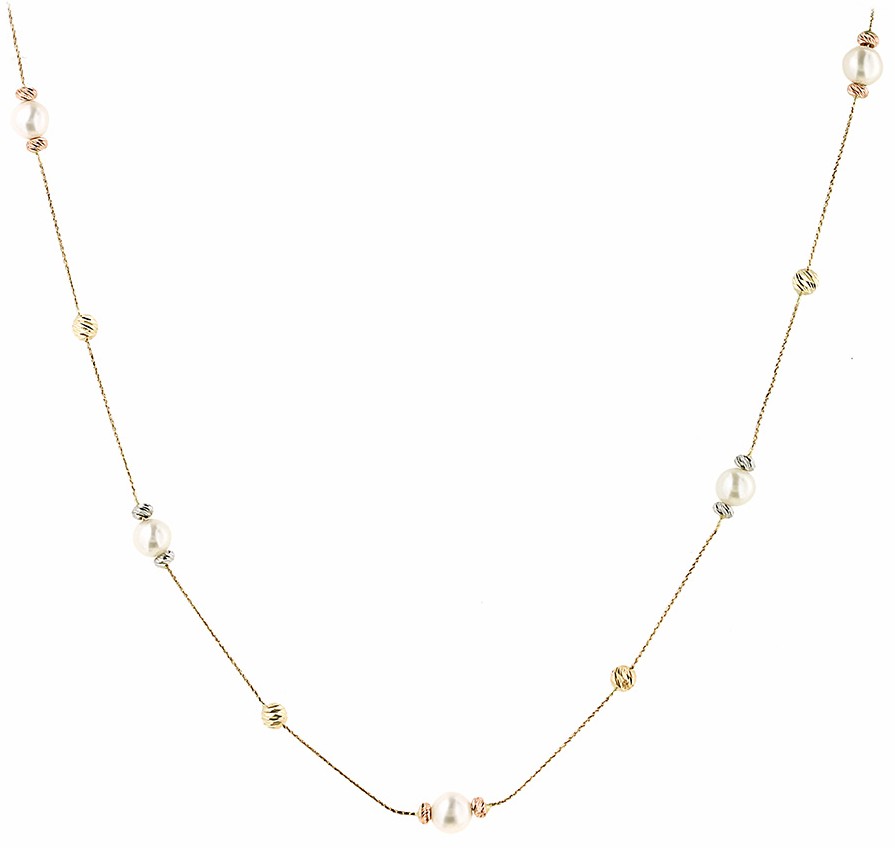 Κολιέ με μαργαριτάρια και μπίλιες επάνω στην αλυσίδα σε κίτρινο χρυσό 14 καρατίων.