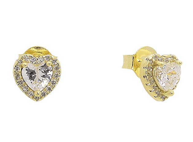 Σκουλαρίκια ροζετα σε σχήμα καρδιάς επιχρυσωμένο σε ασήμι 925 με πέτρες ζιργκόν.