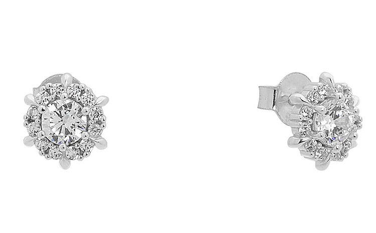 Σκουλαρίκια ροζέτα σε ασήμι 925 με πέτρες ζιργκόν.