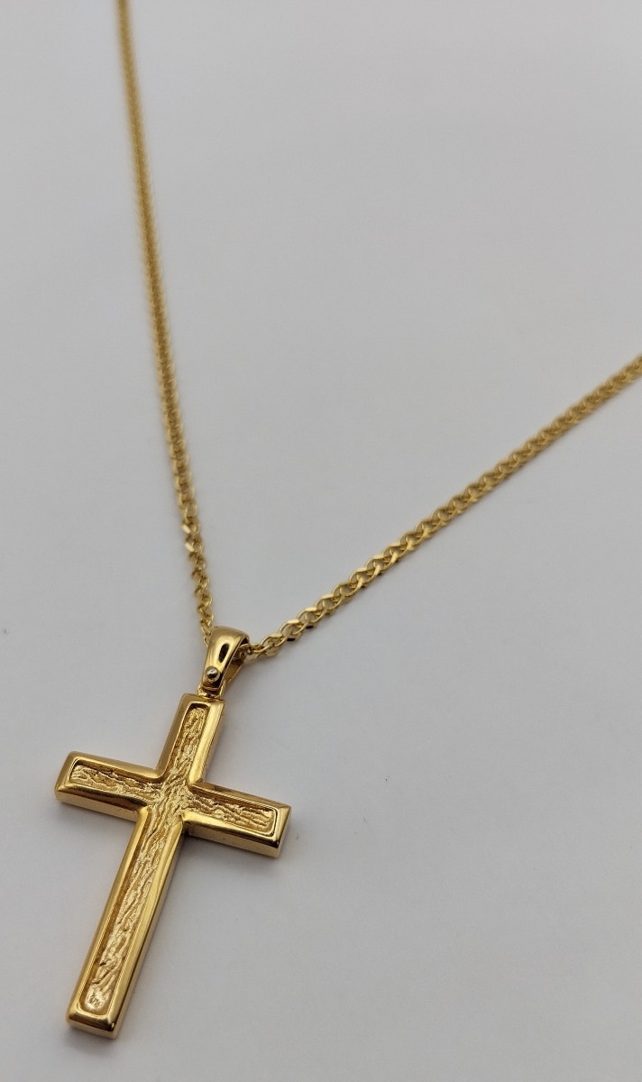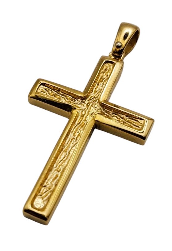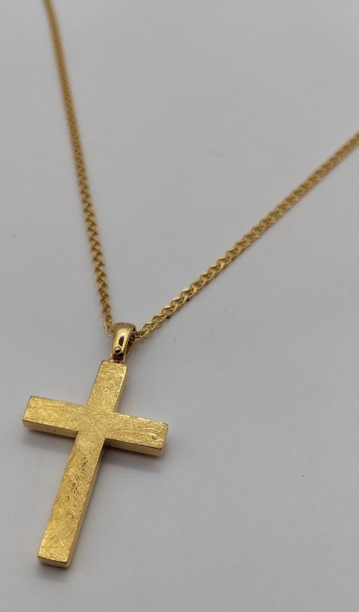 Σταυρός από χρυσό 14 καρατίων με ματ φινίρισμα.