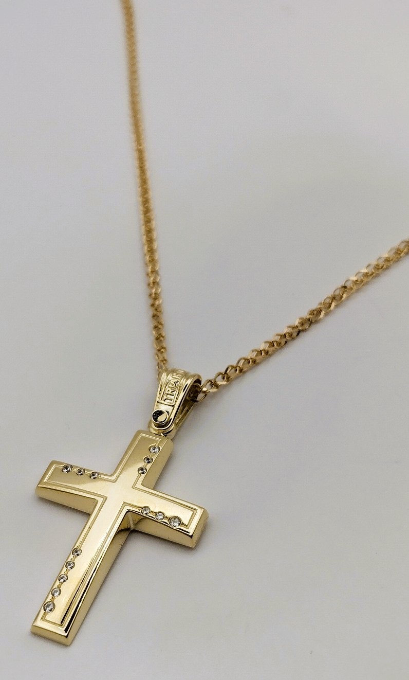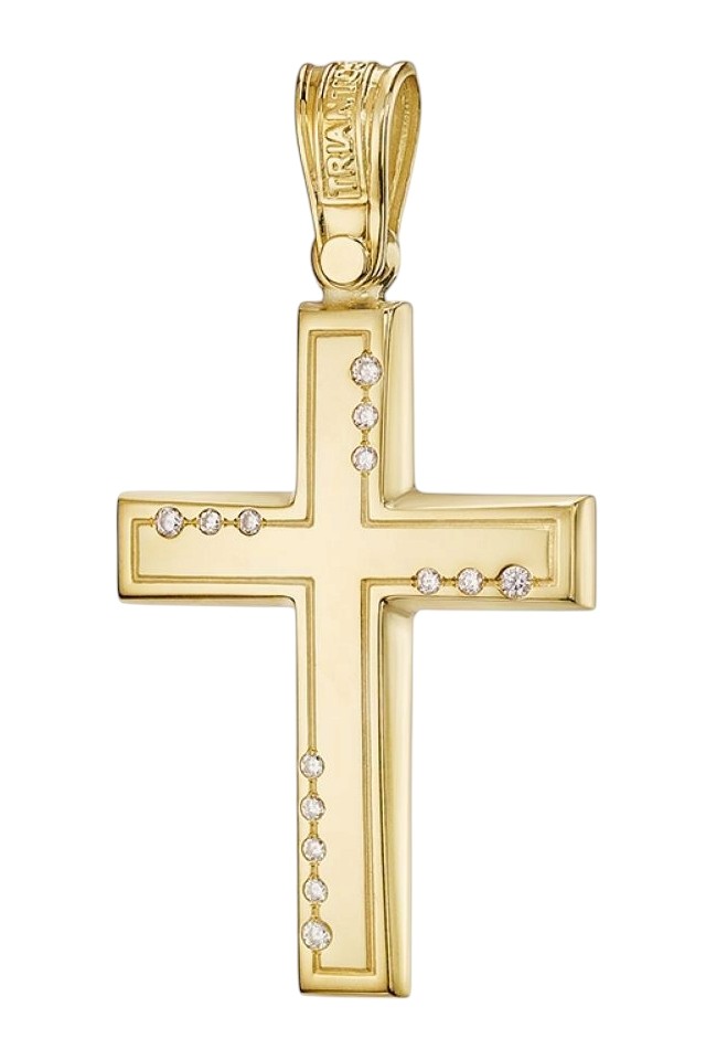 Σταυρός σε χρυσό 14Κ με πέτρες ζιργκόν.