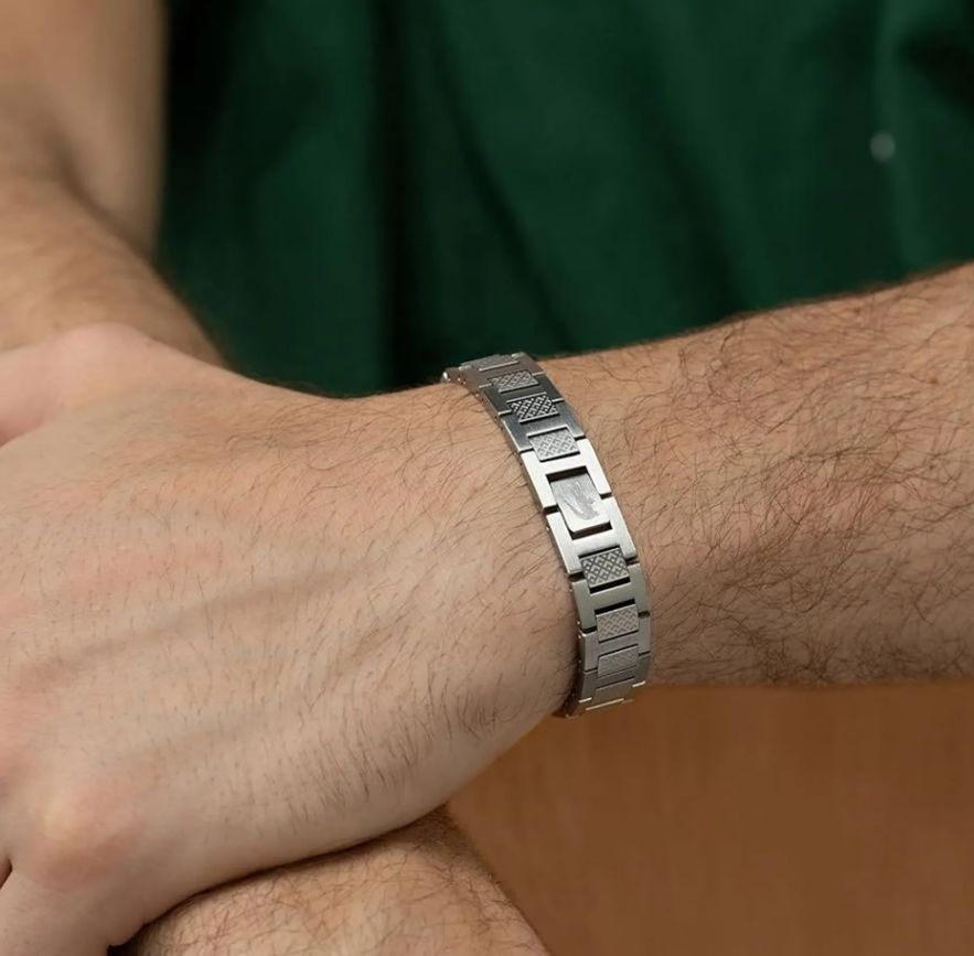 ΧαρακτηριστικαΜαρκα:LacosteΦυλο:Ανδρικά, UnisexΜεταλλο:Ανοξείδωτο ΑτσάλιΧρωμα Μεταλλου:ΑσημίΦινιρισμα:ΛουστρέΕγγυηση:Επίσημης αντιπροσωπείαςΜεγεθος Βραχιολιου:19cmΚουμπωμα:ΑσφαλείαςΣυλλογη:Μοντέρνα