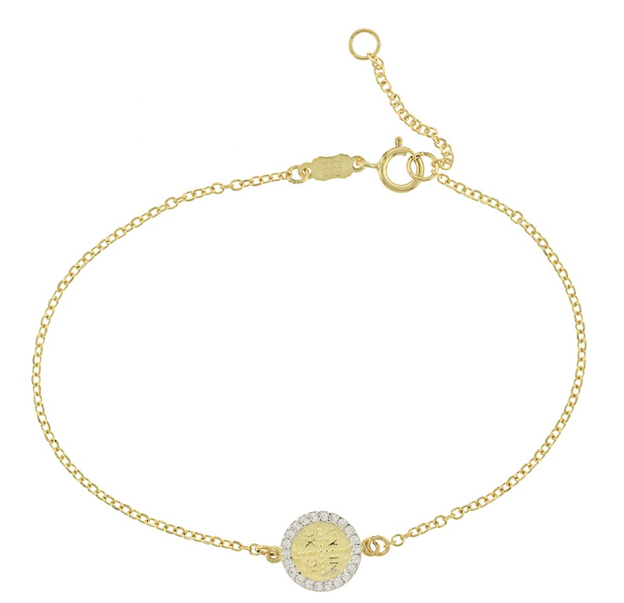 Βραχιόλι Αγιοκωνσταντινάτο σε 9Κ κίτρινο χρυσό με πέτρες ζιργκόν.