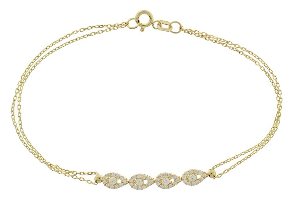 Βραχιόλι ροζέτες με διπλή αλυσίδα σε χρυσό Κ14 με πέτρες ζιργκόν