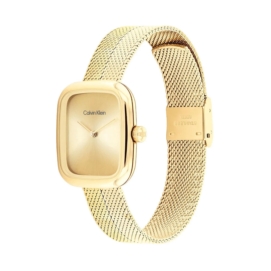 ΧαρακτηριστικαΜαρκα:Calvin KleinΦυλο:ΓυναικείαΤυπος:FashionΣχημα ρολογιου:ΤετράγωνοΔιαμετρος κασας:Small (έως 35mm), 26mmΥλικο Κασας:Ανοξείδωτο ΑτσάλιΚαντραν:ΧρυσόΚρυσταλλο:ΟρυκτόΑδιαβροχο:3 Atm (Τυχαία επαφή με το νερό)Μηχανισμος:ΜπαταρίαςΤυπος δεσιματος:ΜπρασελέΥλικο δεσιματος:Ανοξείδωτο ατσάλιΧρωμα δεσιματος:ΧρυσόΚουμπωμα:ΑσφαλείαςΕγγυηση:2 ετών επίσημης αντιπροσωπείαςΣυλλογη:Adore