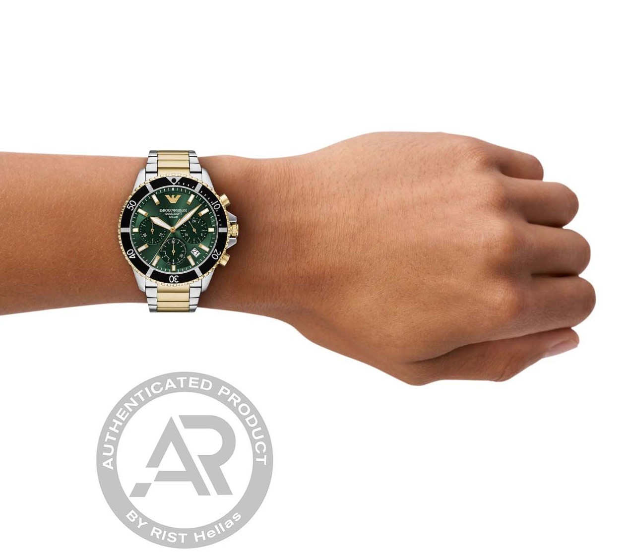 EMPORIO ARMANI World Explorer Chronograph Two Tone Stainless Steel Bracelet AR11695