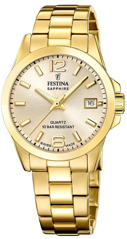 ΧαρακτηριστικαΜαρκα:FestinaΦυλο:ΓυναικείαΤυπος:ΚλασσικάΣχημα ρολογιου:ΣτρογγυλόΔιαμετρος κασας:Small (έως 35mm), 30mmΥλικο Κασας:Ανοξείδωτο ΑτσάλιΚαντραν:ΧρυσόΚρυσταλλο:Αχάρακτο ΖαφείριΑδιαβροχο:10 Atm (Κατάλληλο για κολύμβηση )Μηχανισμος:ΜπαταρίαςΤυπος δεσιματος:ΜπρασελέΥλικο δεσιματος:Ανοξείδωτο ατσάλιΧρωμα δεσιματος:ΧρυσόΚουμπωμα:ΑσφαλείαςΕγγυηση:2 ετών επίσημης αντιπροσωπείας