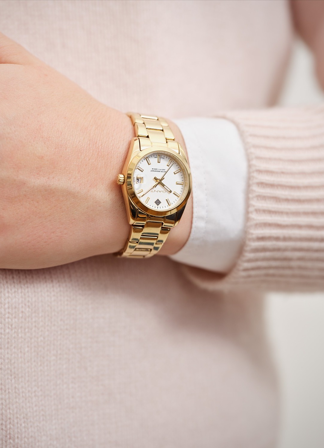 ΧαρακτηριστικαΜαρκα:GantΦυλο:ΓυναικείαΤυπος:FashionΣχημα ρολογιου:ΣτρογγυλόΔιαμετρος κασας:Small (έως 35mm), 28mmΠαχος κασας:8.0mmΥλικο Κασας:Ανοξείδωτο ΑτσάλιΚαντραν:ΛευκόΚρυσταλλο:ΟρυκτόΑδιαβροχο:10 Atm (Κατάλληλο για κολύμβηση )Μηχανισμος:ΜπαταρίαςΛειτουργιες:ΗμερομηνίαΤυπος δεσιματος:ΜπρασελέΥλικο δεσιματος:Ανοξείδωτο ατσάλιΧρωμα δεσιματος:ΧρυσόΚουμπωμα:ΑσφαλείαςΕγγυηση:2 ετών επίσημης αντιπροσωπείαςΣυλλογη:Everett Mini