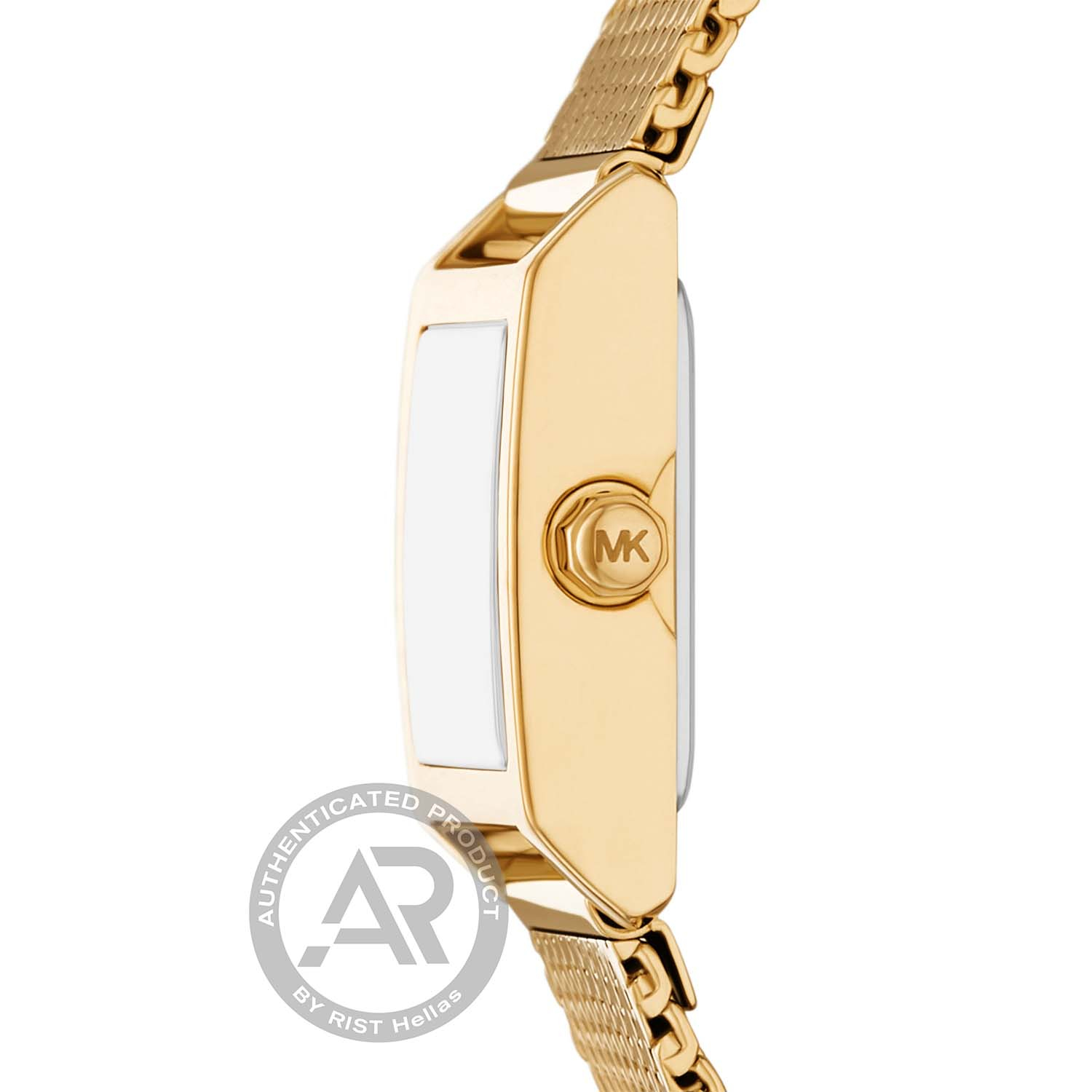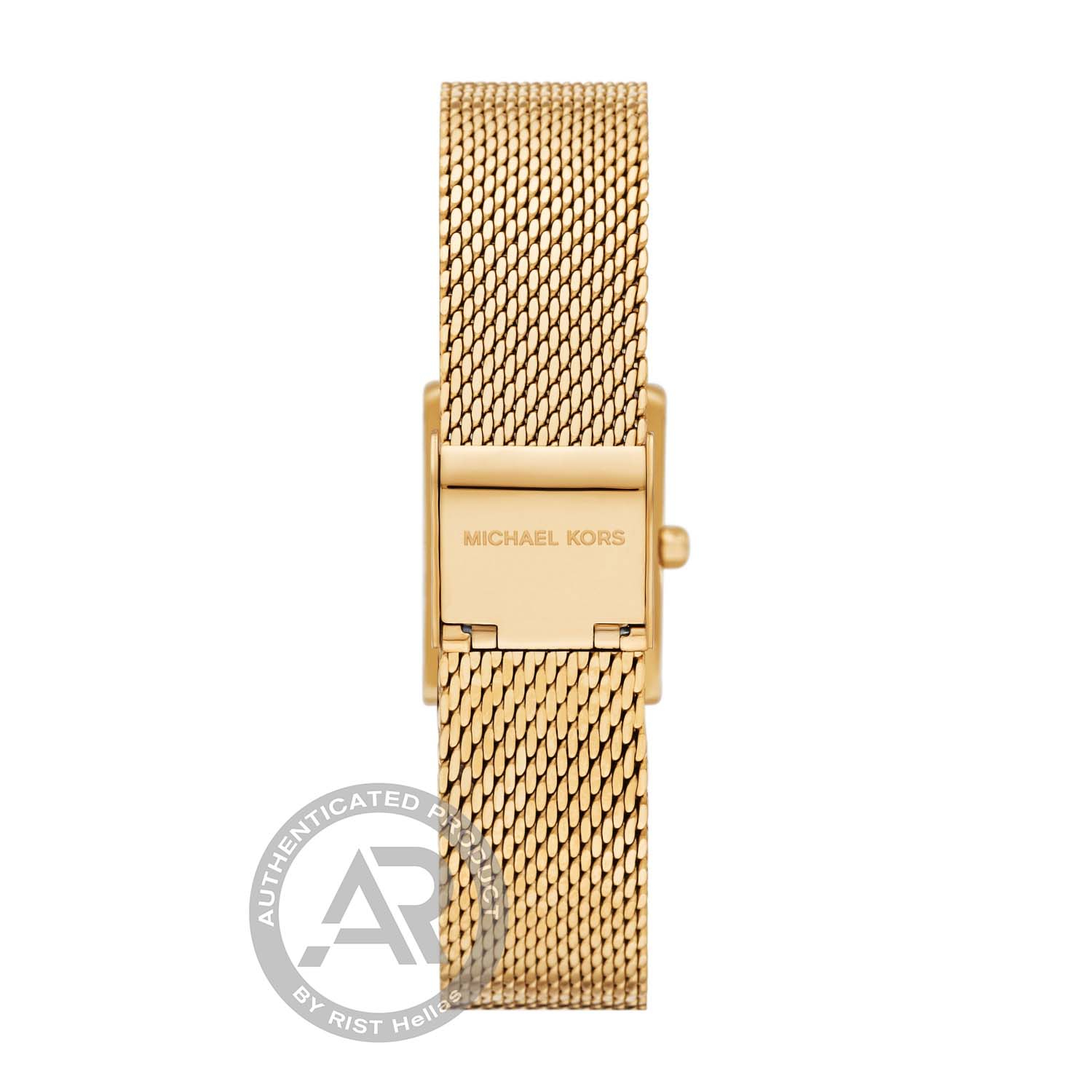 ΧαρακτηριστικαΜαρκα:Michael KorsΦυλο:ΓυναικείαΤυπος:FashionΣχημα ρολογιου:ΤετράγωνοΔιαμετρος κασας:Small (έως 35mm), 20mmΠαχος κασας:7.0mmΥλικο Κασας:Ανοξείδωτο ΑτσάλιΚαντραν:ΧρυσόΚρυσταλλο:ΟρυκτόΑδιαβροχο:5 Atm (Ελαφριά χρήση στο νερό)Μηχανισμος:ΜπαταρίαςΤυπος δεσιματος:ΜπρασελέΥλικο δεσιματος:Ανοξείδωτο ατσάλιΧρωμα δεσιματος:ΧρυσόΚουμπωμα:ΑσφαλείαςΕγγυηση:2 ετών επίσημης αντιπροσωπείαςΣυλλογη:Georgie
