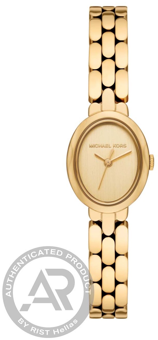 ΧαρακτηριστικαΜαρκα:Michael KorsΦυλο:ΓυναικείαΤυπος:FashionΣχημα ρολογιου:ΟβάλΔιαμετρος κασας:Small (έως 35mm), 21mmΠαχος κασας:8.0mmΥλικο Κασας:Ανοξείδωτο ΑτσάλιΚαντραν:ΧρυσόΚρυσταλλο:ΟρυκτόΑδιαβροχο:3 Atm (Τυχαία επαφή με το νερό)Μηχανισμος:ΜπαταρίαςΤυπος δεσιματος:ΜπρασελέΥλικο δεσιματος:Ανοξείδωτο ατσάλιΧρωμα δεσιματος:ΧρυσόΚουμπωμα:ΑσφαλείαςΕγγυηση:2 ετών επίσημης αντιπροσωπείαςΣυλλογη:Maude