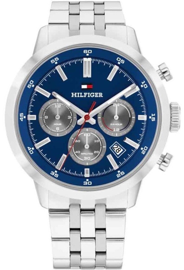 ΧαρακτηριστικαΜαρκα:Tommy HilfingerΦυλο:ΑνδρικάΤυπος:FashionΣχημα ρολογιου:ΣτρογγυλόΔιαμετρος κασας:Large (43mm-46mm), 43mmΥλικο Κασας:Ανοξείδωτο ΑτσάλιΚαντραν:ΜπλεΚρυσταλλο:ΟρυκτόΑδιαβροχο:5 Atm (Ελαφριά χρήση στο νερό)Μηχανισμος:ΜπαταρίαςΛειτουργιες:Ημερομηνία, Ημέρα, Ένδειξη ώρας σε 24ωρη βάσηΤυπος δεσιματος:ΜπρασελέΥλικο δεσιματος:Ανοξείδωτο ατσάλιΧρωμα δεσιματος:ΑσημίΚουμπωμα:ΑσφαλείαςΕγγυηση:2 ετών επίσημης αντιπροσωπείαςΣυλλογη:Kent