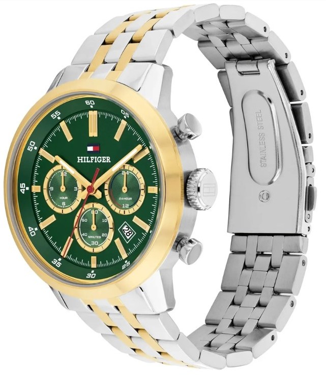 ΧαρακτηριστικαΜαρκα:Tommy HilfingerΦυλο:ΑνδρικάΤυπος:FashionΣχημα ρολογιου:ΣτρογγυλόΔιαμετρος κασας:Large (43mm-46mm), 43mmΥλικο Κασας:Ανοξείδωτο ΑτσάλιΚαντραν:ΠράσινοΚρυσταλλο:ΟρυκτόΑδιαβροχο:5 Atm (Ελαφριά χρήση στο νερό)Μηχανισμος:ΜπαταρίαςΛειτουργιες:Ημερομηνία, Ημέρα, Ένδειξη ώρας σε 24ωρη βάσηΤυπος δεσιματος:ΜπρασελέΥλικο δεσιματος:Ανοξείδωτο ατσάλιΧρωμα δεσιματος:ΔίχρωμοΚουμπωμα:ΑσφαλείαςΕγγυηση:2 ετών επίσημης αντιπροσωπείαςΣυλλογη:Kent