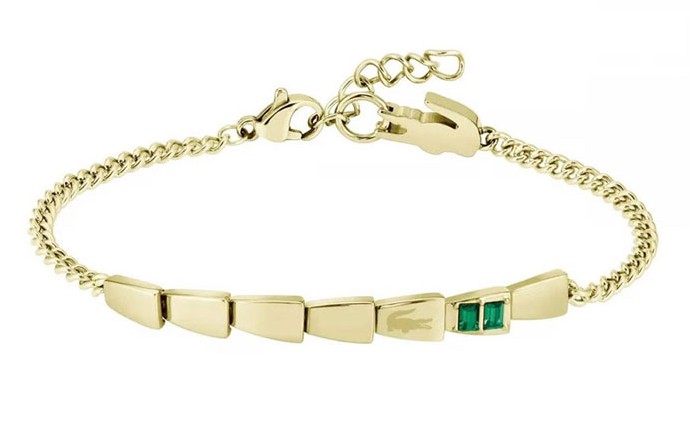 FeaturesBrand:LacosteGender:Ladies, UnisexMetal:Stainless SteelMetal's Colour:GoldFinish:PolishedStones Colour:GreenStones:ZirconWarranty:Official Dealership GuaranteeBracelet Size:20cmClasp type:SecurityCollection:Μodern