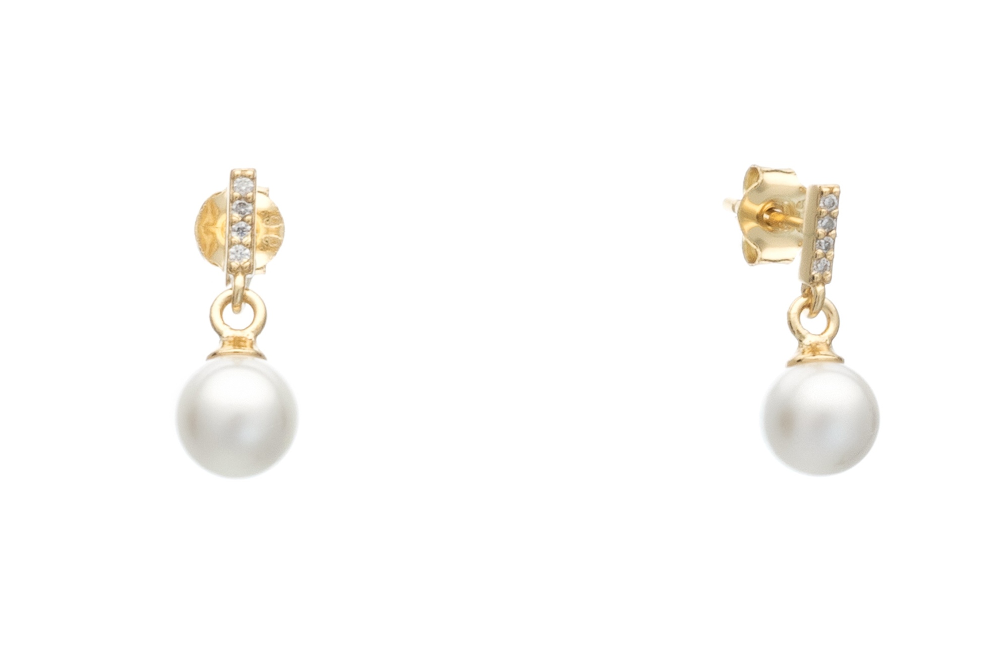 Earrings pearls in 925 gold plated silver with zircon stones.