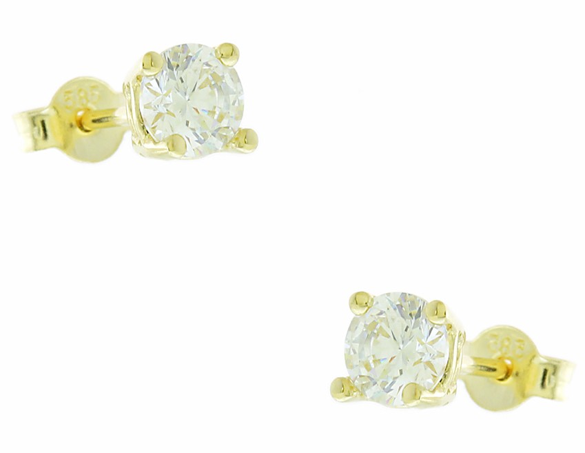 Earrings single stone in 9 carat yellow gold with zircon stone.