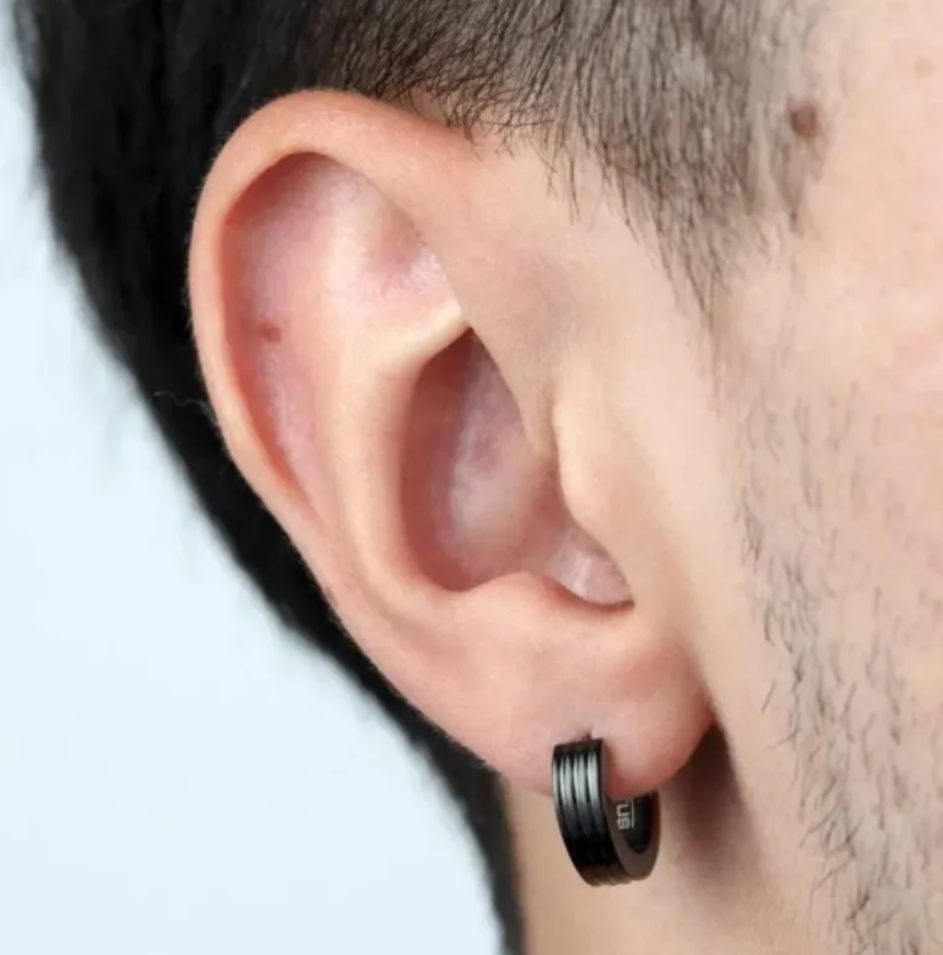 Men's earrings hoops stainless steel in black color.
