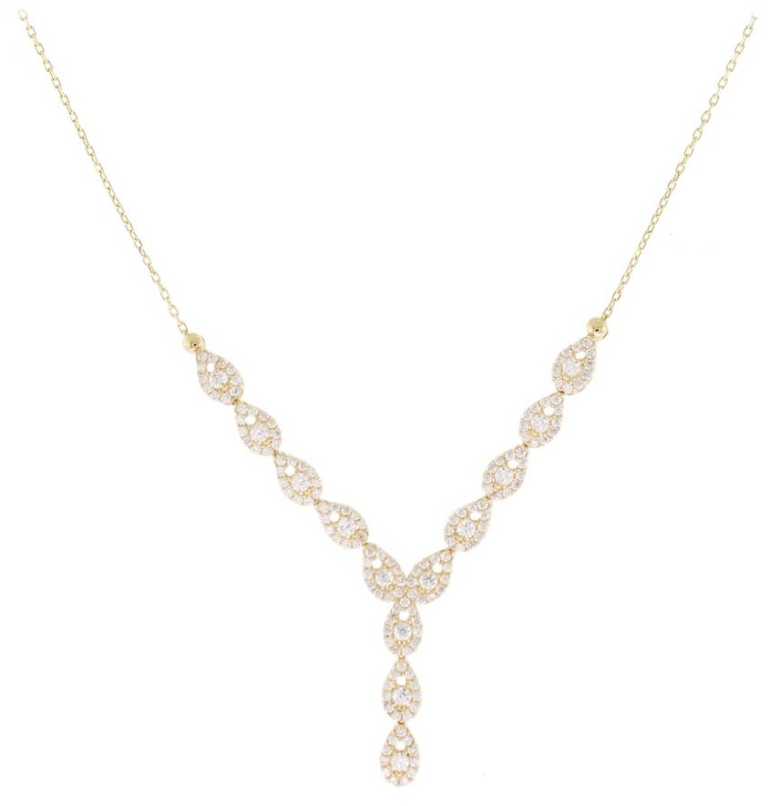 Necklace rosettes in 14K yellow gold with zircon stones.