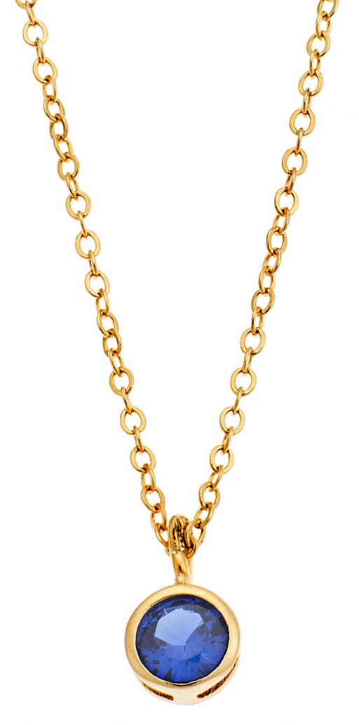 Necklace single stone gold plated in silver 925 with blue zircon stone.