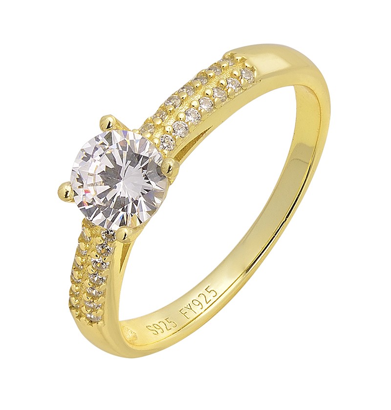 Ring single stone gold-plated in 925 silver with zircon stones.