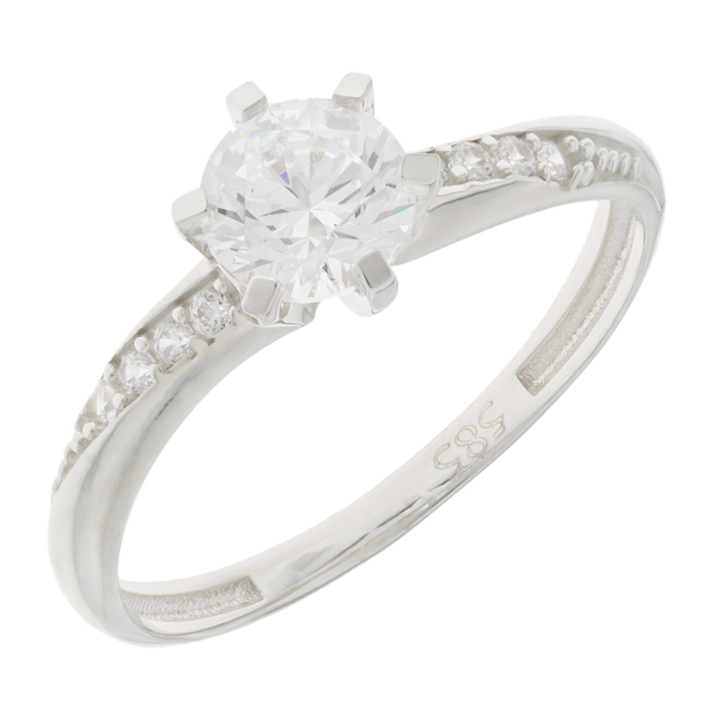 FeaturesBrand:Story of GoldGender:LadiesMetal:Gold 14 caratsMetal's Colour:White GoldFinish:PolishedStones Colour:WhiteStones:ZirconWeight:2.2grRing Size:56Collection:Single Stone